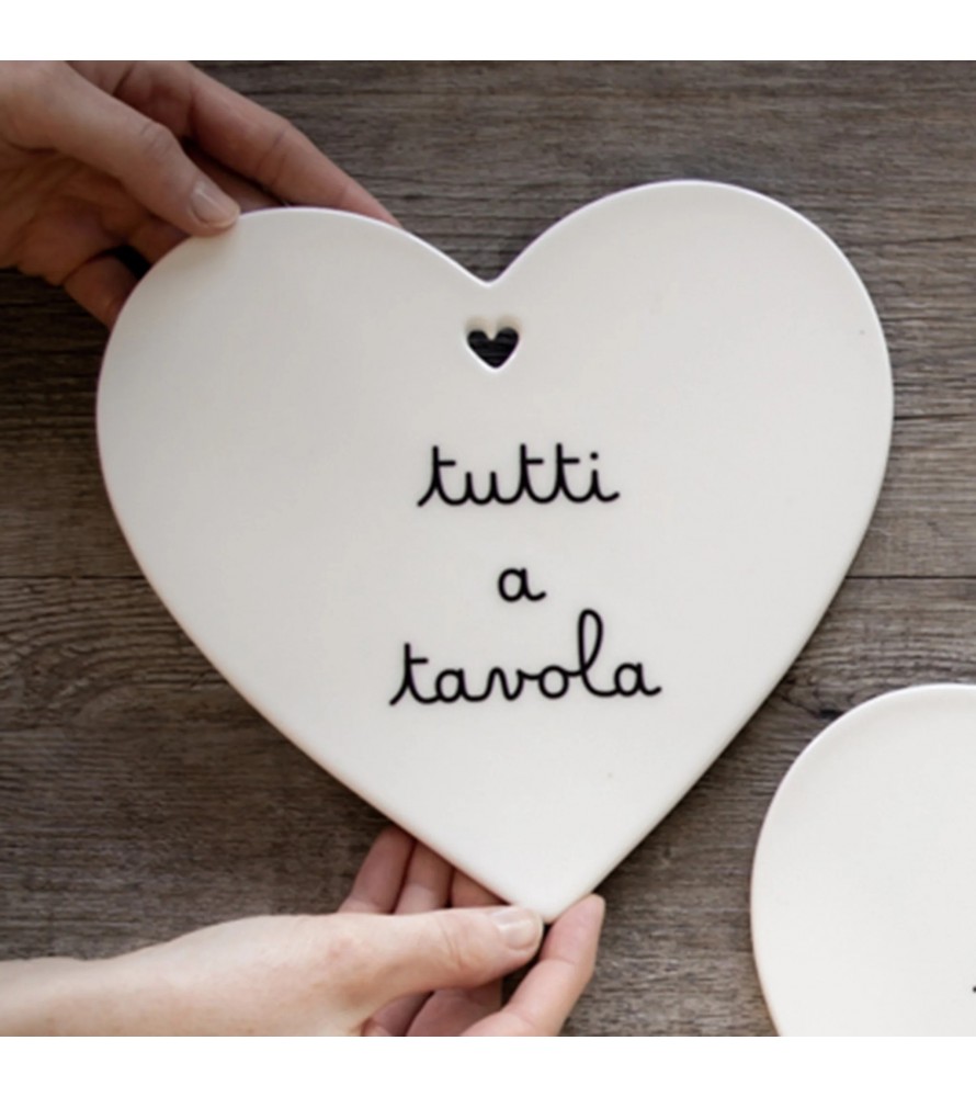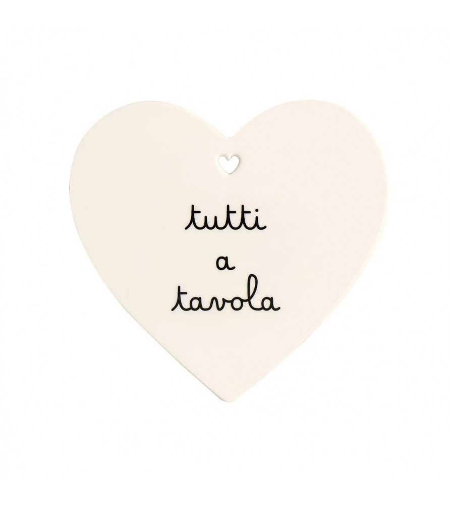 Sottopentola a forma di cuore con decoro TUTTI A TAVOLA.