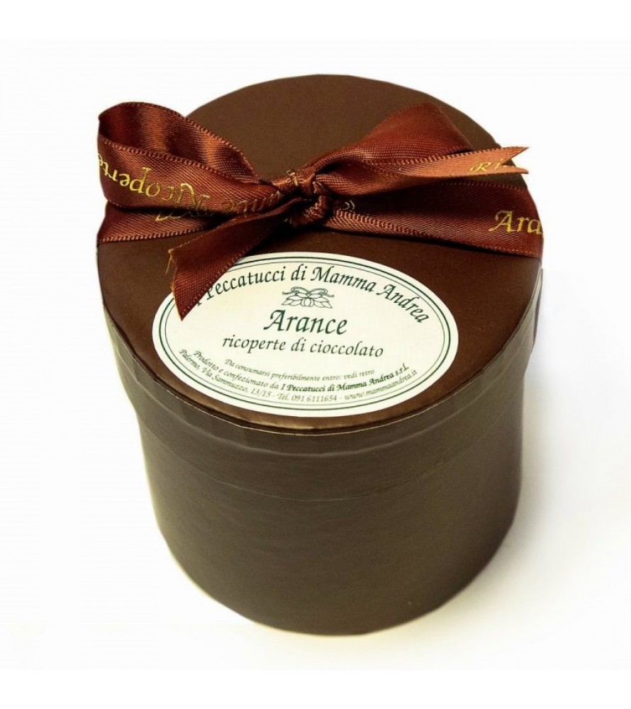 Prodotto goloso e raffinato,ottenuto dalle fette delle arance siciliane candite,e ricoperte di cioccolato fondente al 56% che ne sigilla l’aroma e la morbidezza.. Sono un piccolo regalo graditissimo da fare agli amici e a se stessi. Perfette dopo cena accompagnate da un piccolo bicchiere di liquore agli agrumi. Confezionate in elegante scatola realizzata a mano.
