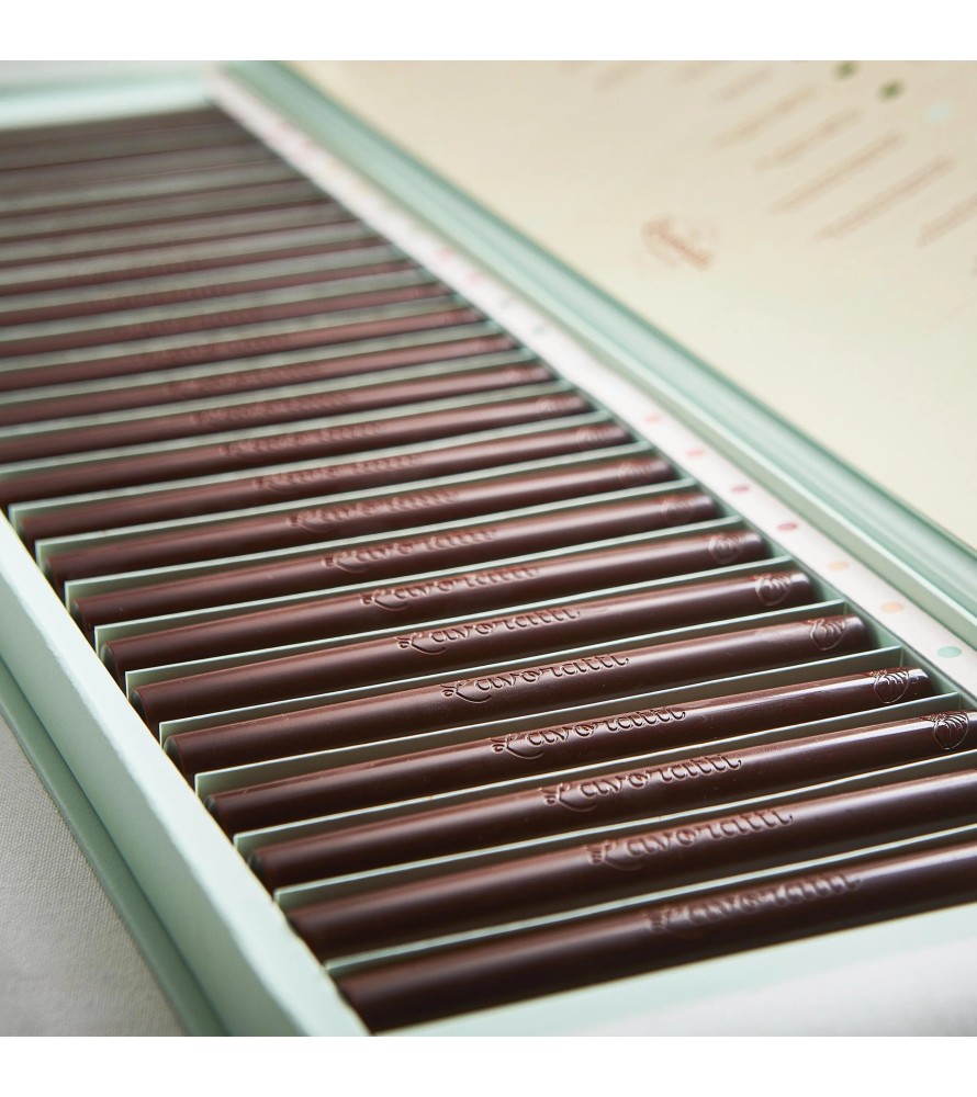 In una elegante confezione che ricorda quella dei colori da disegno, Lavoratti propone 24 matite ripiene. Ogni matita di cioccolato racchiude un morbido ripieno che esprime la ricchezza e la varietà dei sapori del Mediterraneo.