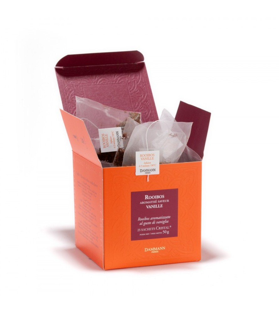 Confezione da 25 bustine Cristal di Tè Rooibos aromatizzato alla Vaniglia.