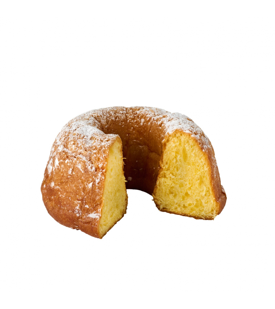 Il più leggero della famiglia dei lievitati: la Ciambella Perbellini è un lievitato soffice e alveolato, che viene prodotto tutto l’anno vista la maggiore leggerezza dell’impasto. Il contenuto di burro è infatti inferiore rispetto ai lievitati natalizi, ma il gusto rimane sempre avvolgente.