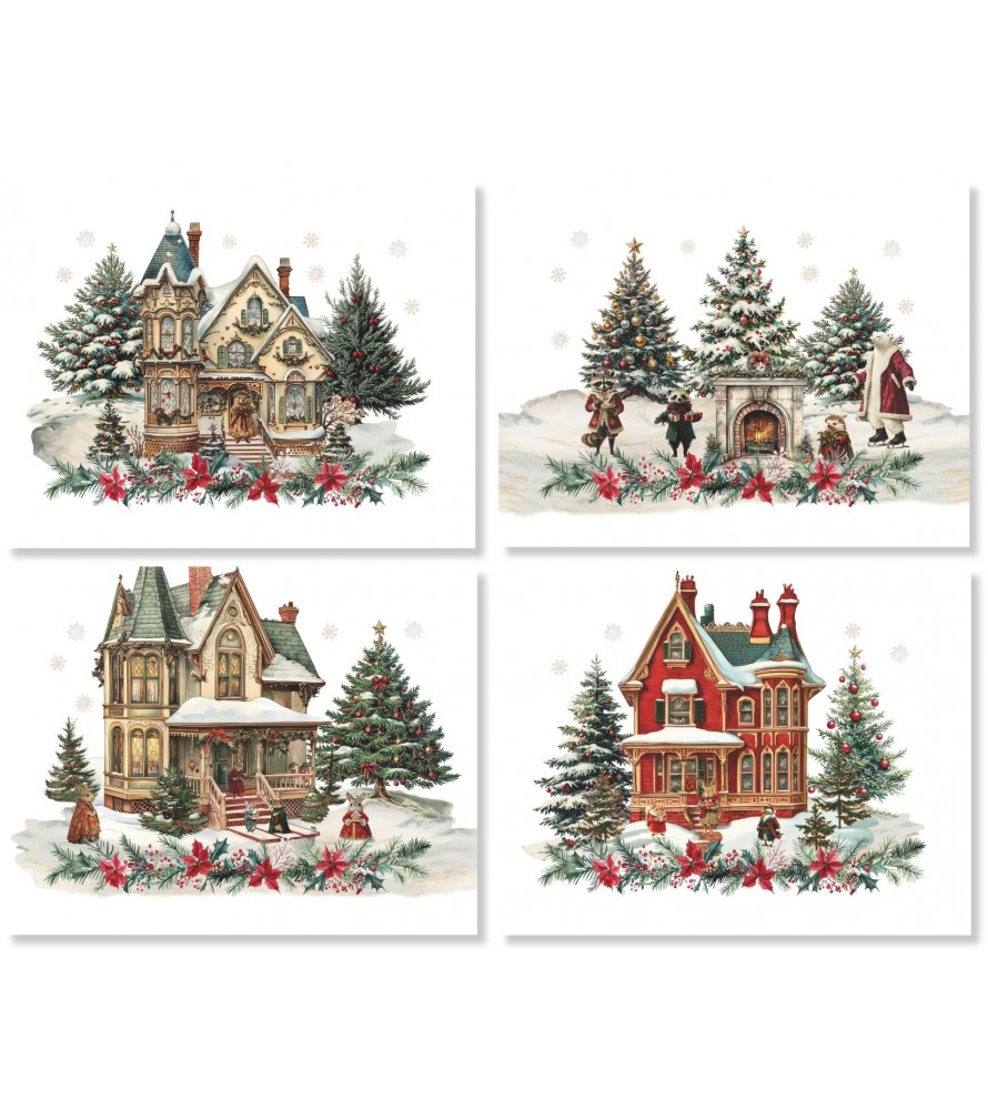 Immergiti nell'atmosfera magica dei villaggi di Natale con il Set di 4 Tovagliette Americane della Collezione "Xmas Village" di The Napking.