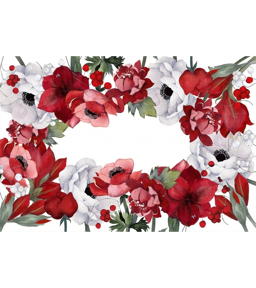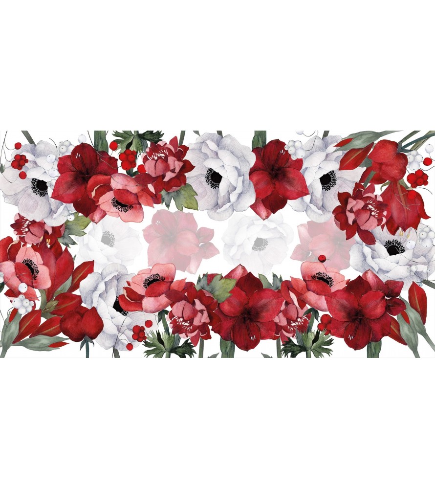 Il disegno "Anemoni" è un vero e proprio capolavoro botanico, che decora la superficie della tovaglia con un tripudio di fiori e bacche.