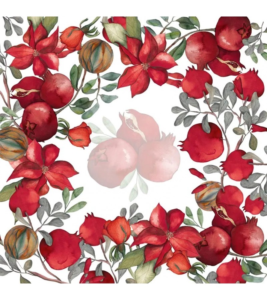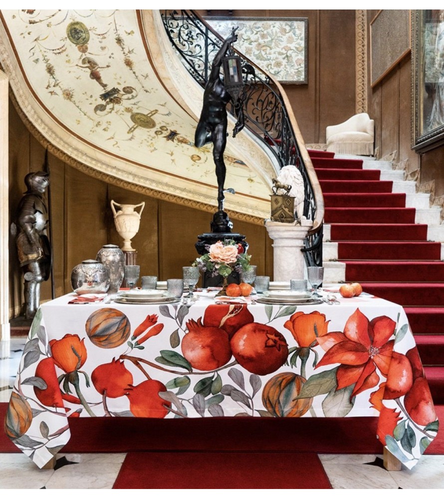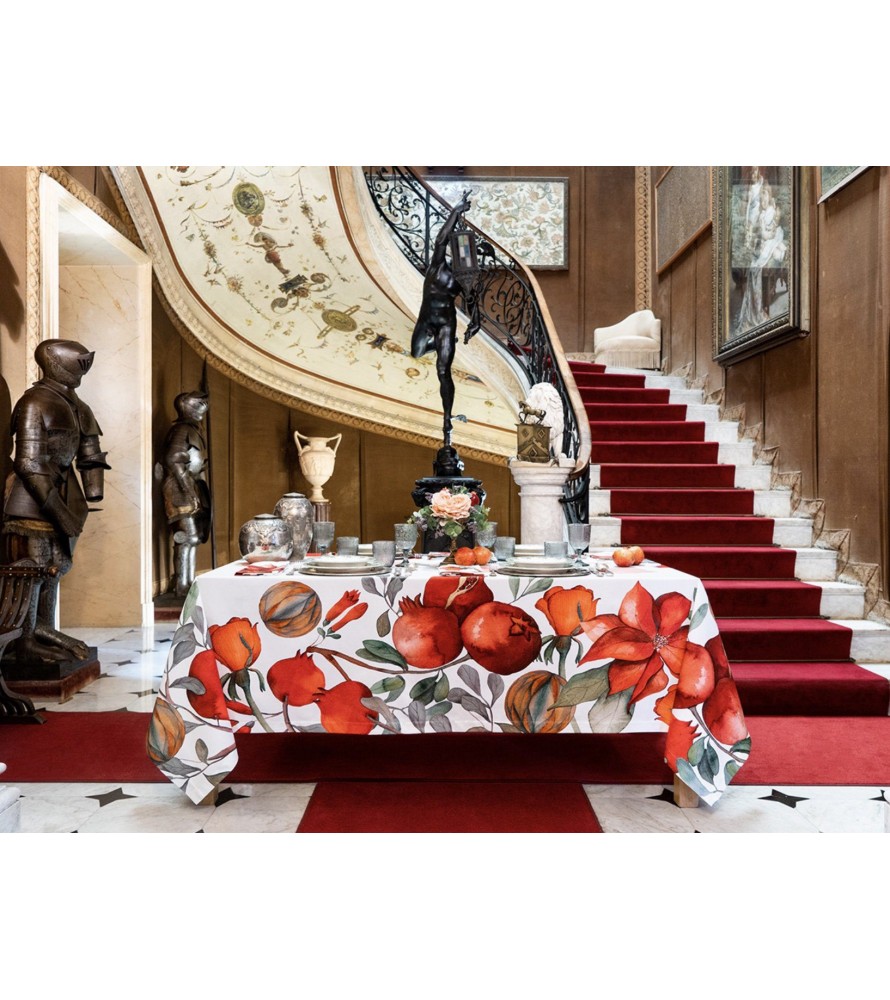 Nuova Tovaglia/Copritavolo Grenade The Napking con elegante stampa di melograni in raso di cotone antimacchia,un trattamento impermeabilizzante delle fibre che garantisce resistenza a qualsiasi tipo di macchia.